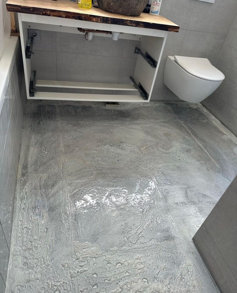 Met zorgvuldig vakmanschap en oog voor detail hebben we deze moderne vloerafwerking toegepast, waardoor de badkamer een stijlvolle en eigentijdse uitstraling heeft gekregen.